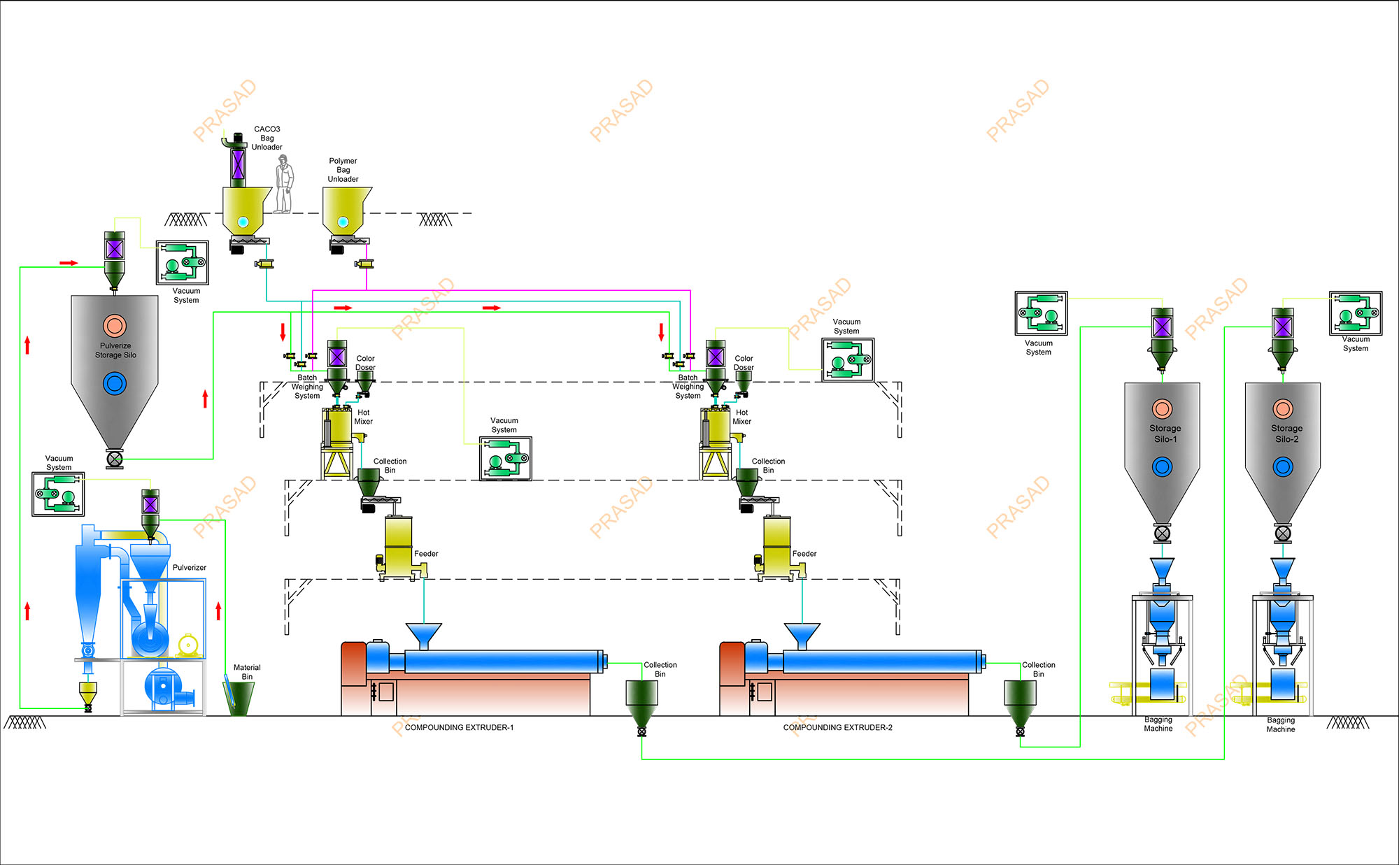 - complete drying & storage solution for finished grade granules.