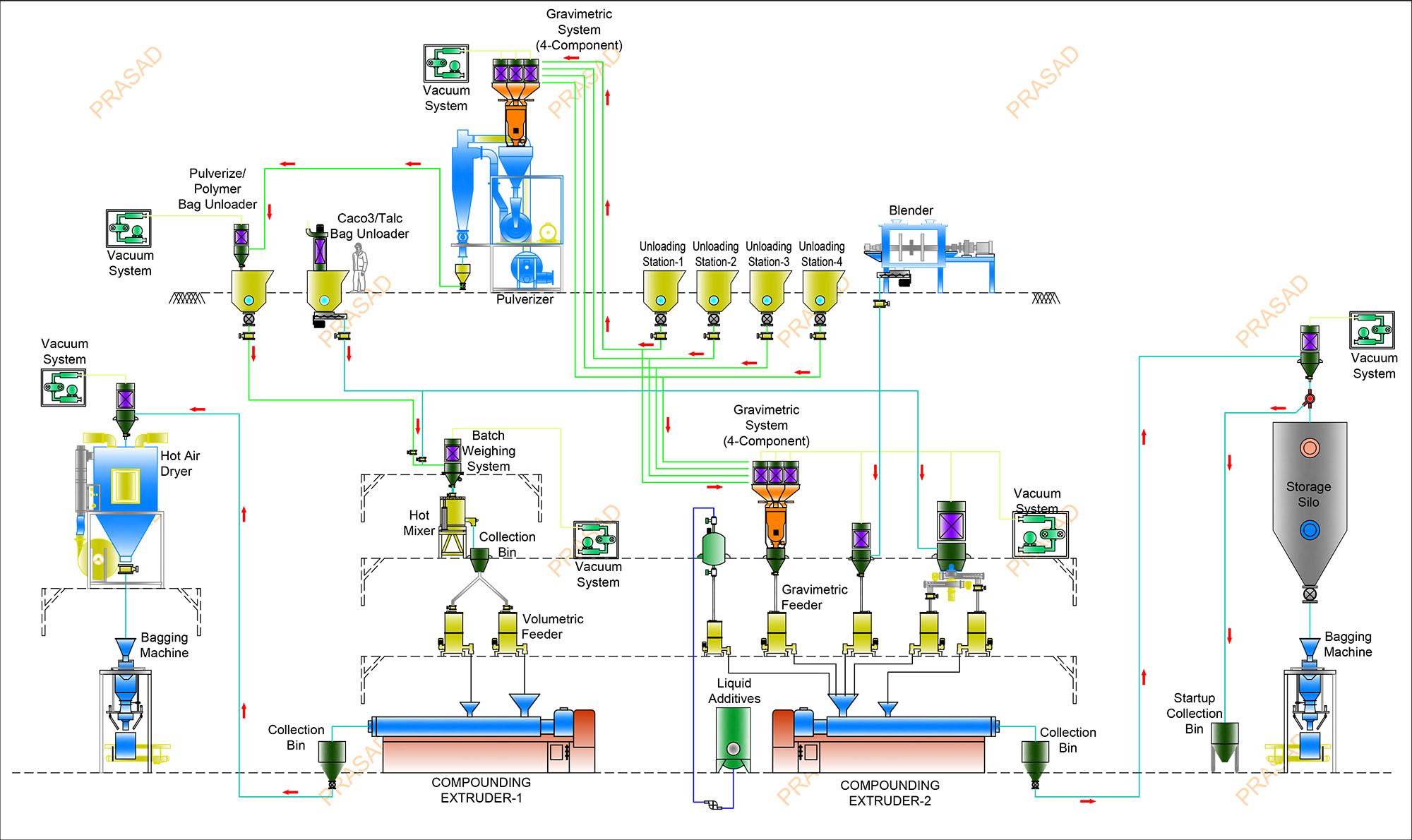- complete drying & storage solution for finished grade granules.