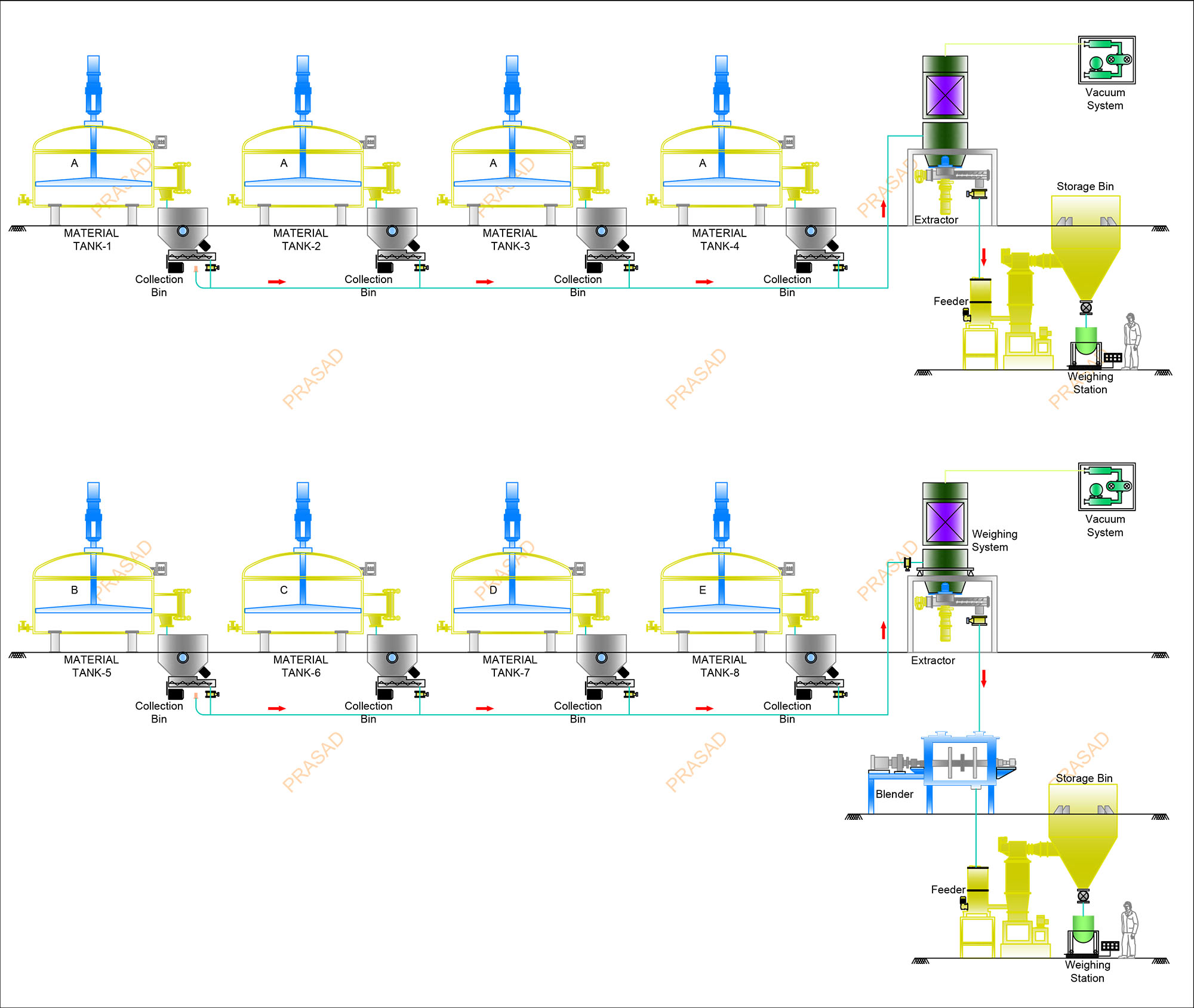 Insecticide plant works with bio-hazard materials and such production facilities required only skilled labours to handle material manually. Connecting multiple batch blenders with common conveying system reduces manpower and material movement.
